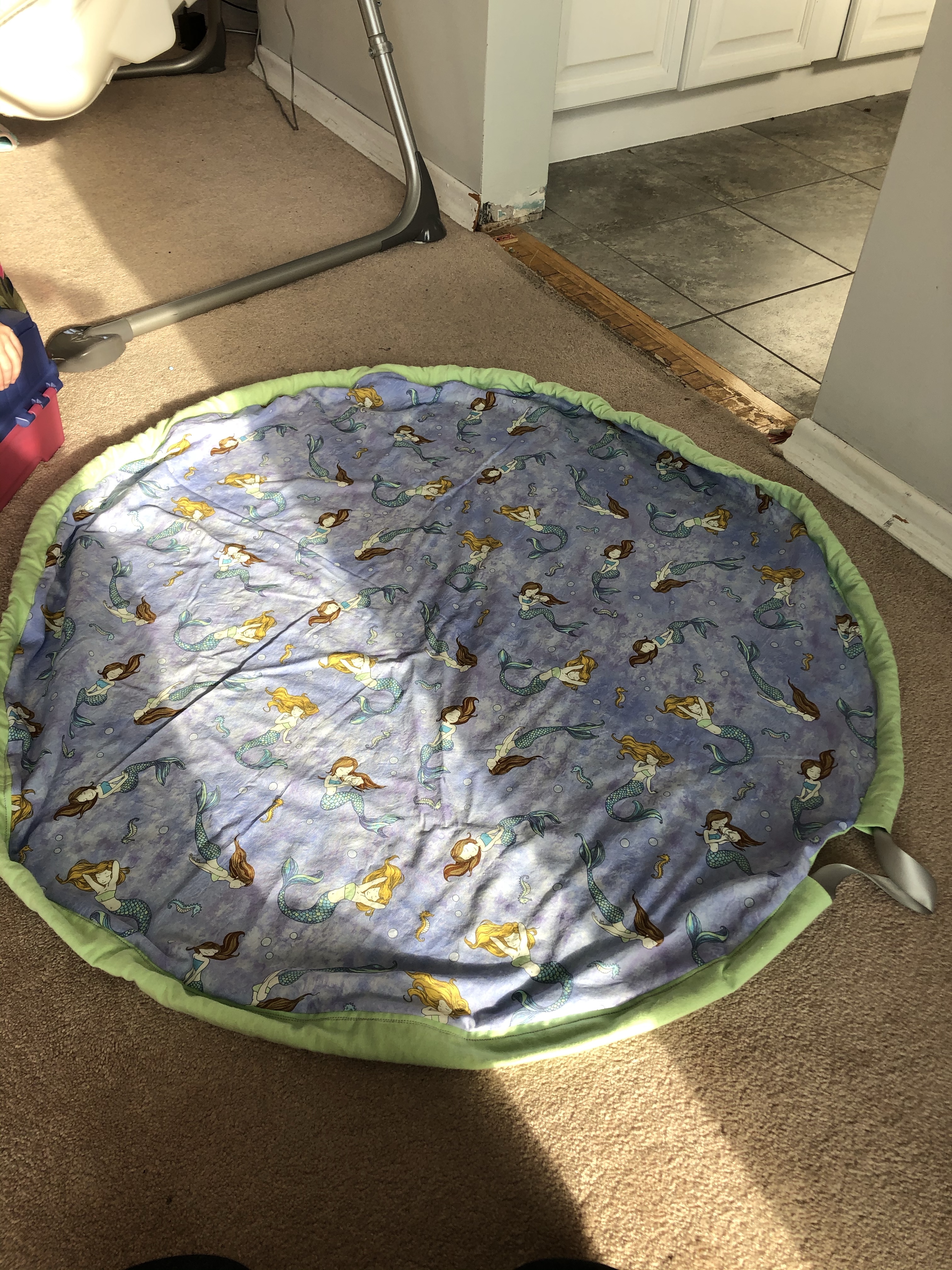 This cinch bag works on lots of different small toys. It’s such a great idea when you have other littles around, too. My oldest can cinch it up quick and move to another space when her little sister comes around. I found the tutorial here.