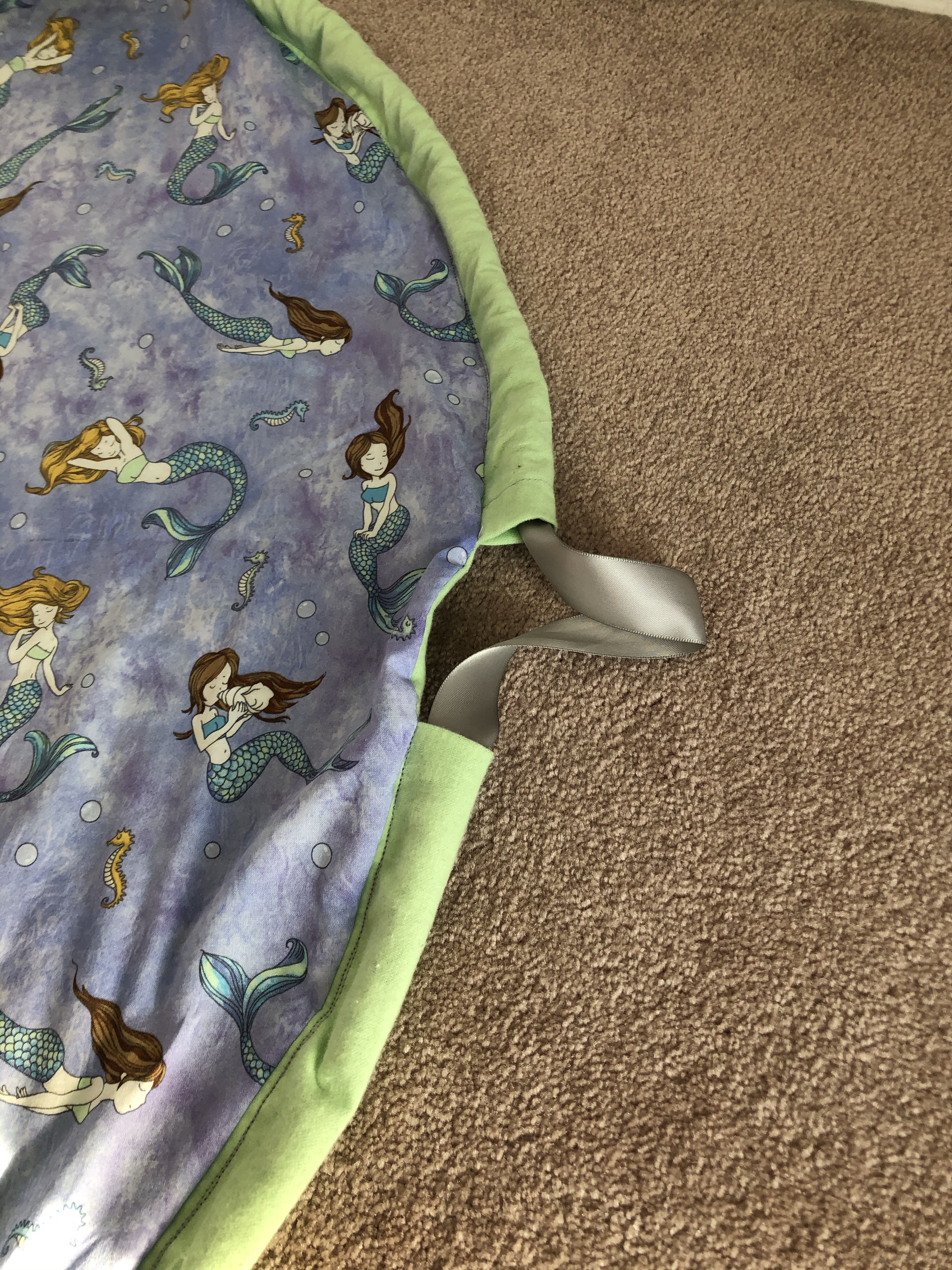 I took my daughter to the fabric store and asked her to pick out 2 matching fabrics. I shouldn’t be surprised that it was mermaid themed.