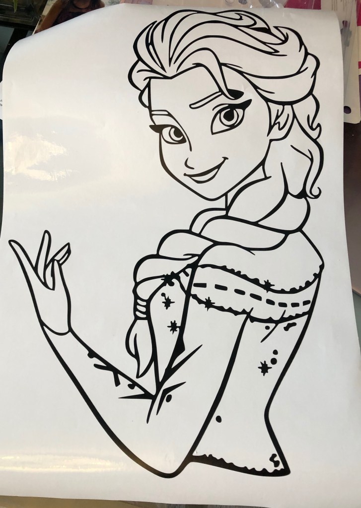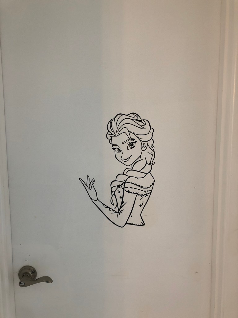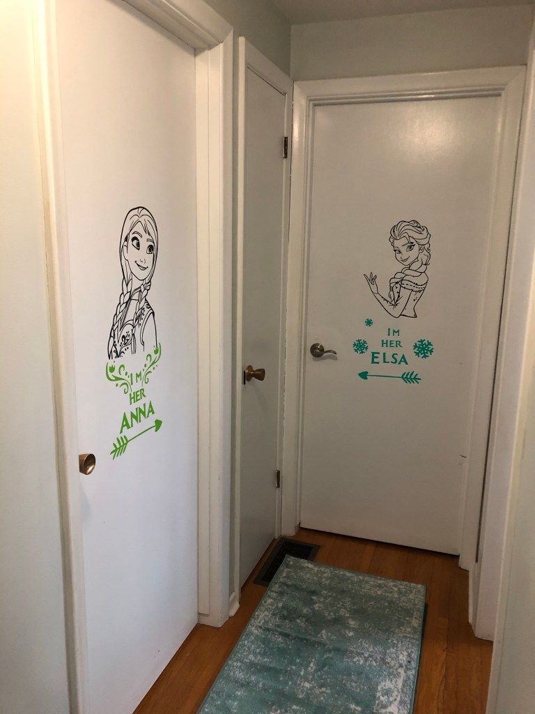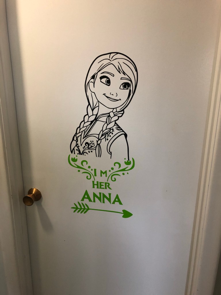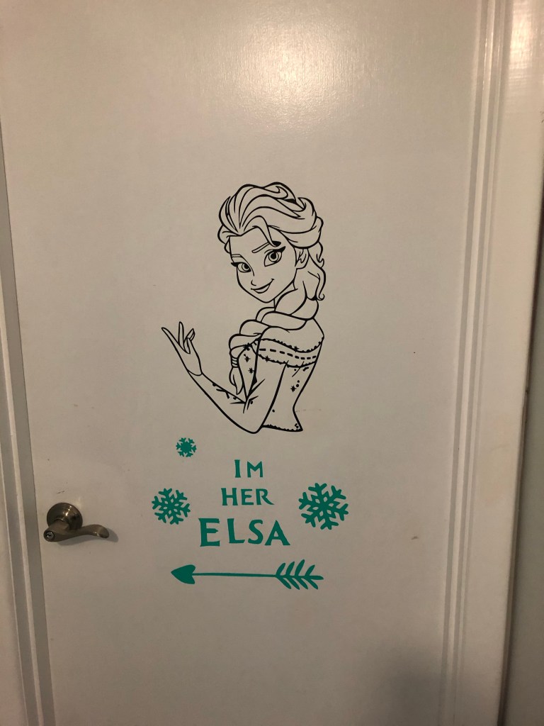The Frozen Fever didn’t start at our house until Frozen 2 came out. Ever since then, my oldest has been a big fan and Elsa is her favourite. I found a couple images of Elsa and Anna (for my youngest) to make large vinyl stickers for their doors.