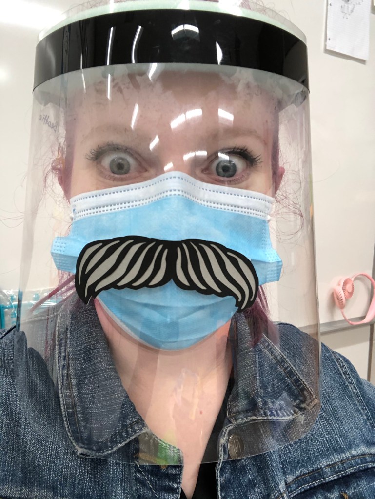 I decided to make the best of the situation. I remembered the photo booth props that were available on Cricut Access and I got to work. Initially I picked props that I would be able to see through but eventually I realized I could only deal with hats and hair dos. The tape residue from the props were leaving my shield marked up.