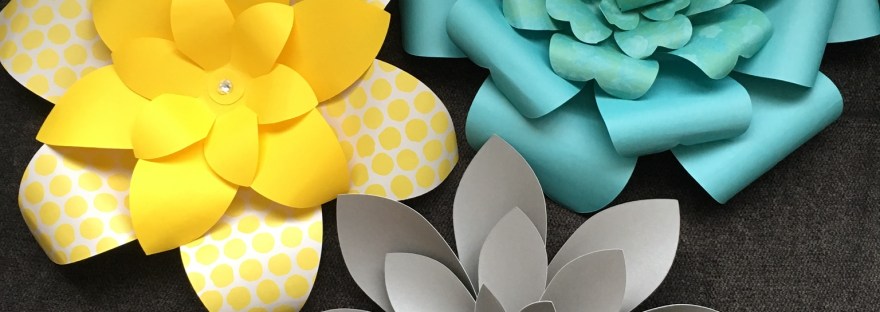 My daughter’s closet needed something above to jazz up the space. I had seen these paper flowers in a Cricut Design Space that I wanted to try. I was picturing the petals curled back to stick out from the wall so I decided to make them out of thin paper (What do you call letter paper that isn’t as thick as cardstock?). I made the first flower on yellow solid and patterned paper. It needed more layers.