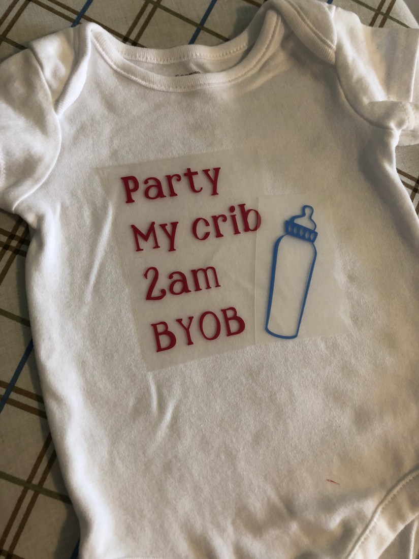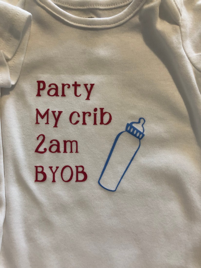 My second little one is due July 23rd and I have a huge number of pins piling up. I decided to get some onesies made up on my Cricut.