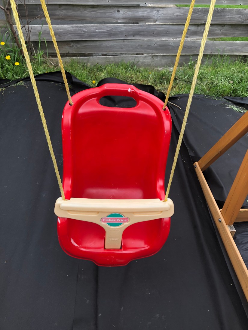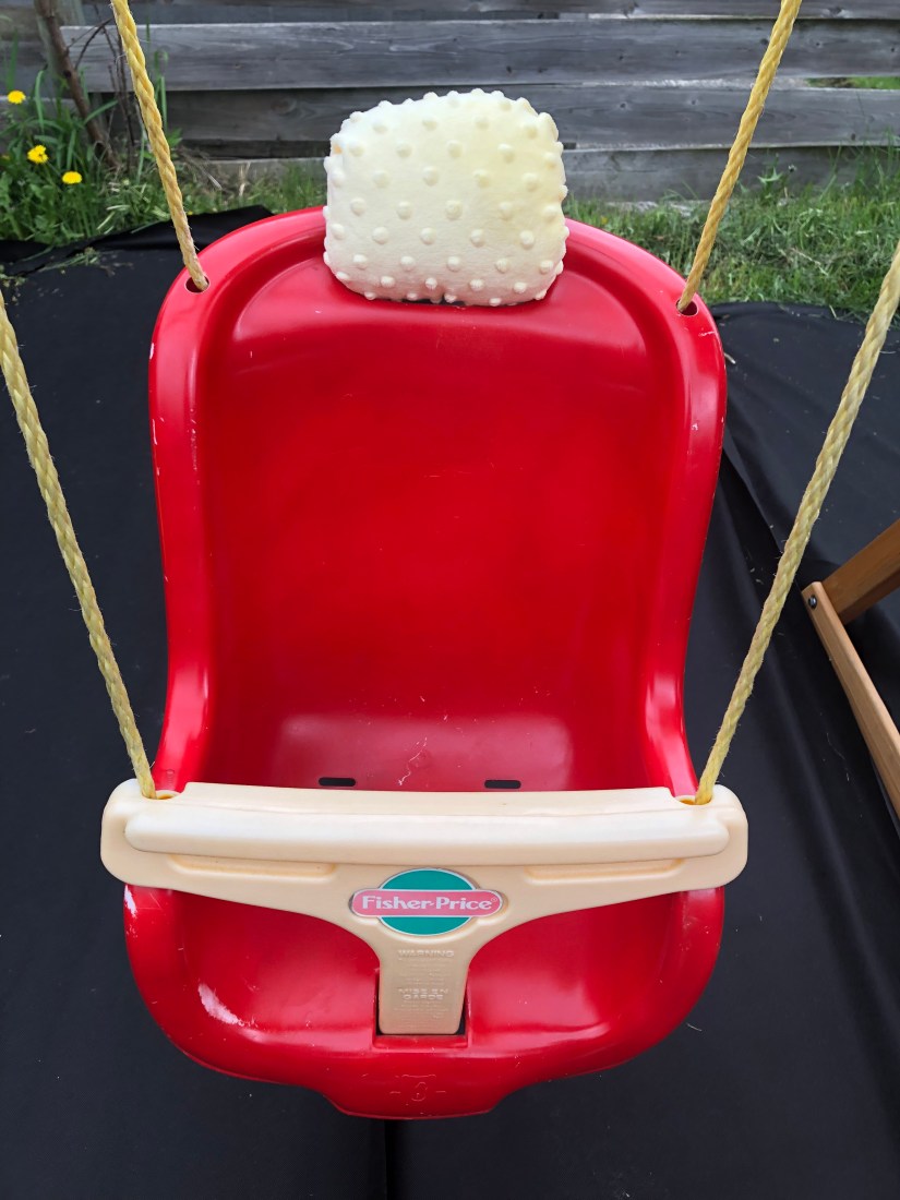 My daughter LOVES her swing but smacks her head when I’m a little too aggressive with the pushing. I had some extra fabric hanging around so I got to work! It was a happy coincidence that the colours matched nicely.