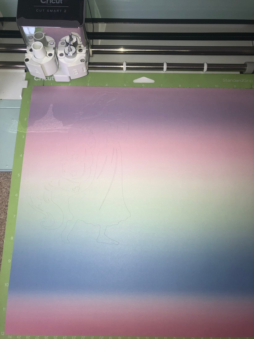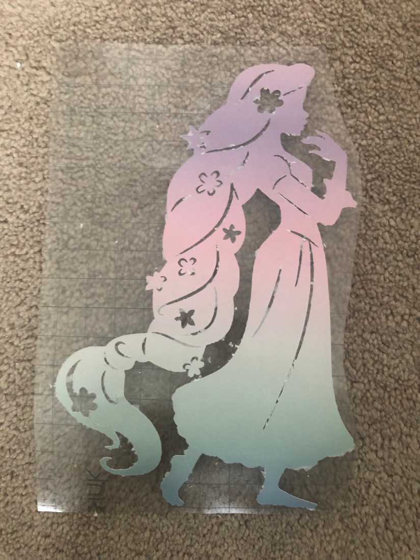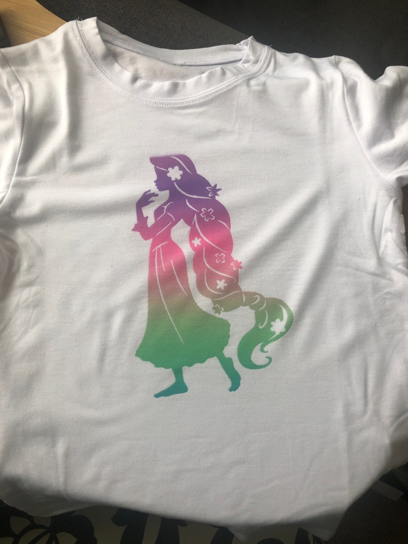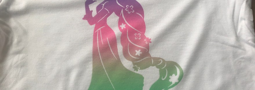 My daughter and I wanted to make Disney princess shirts for our first try at using Infusible Ink transfer sheets by Cricut. We bought the Cricut Infusible Ink compatible shirts. Kaydence really wanted Rapunzel and I looked for a Merida silhouette.