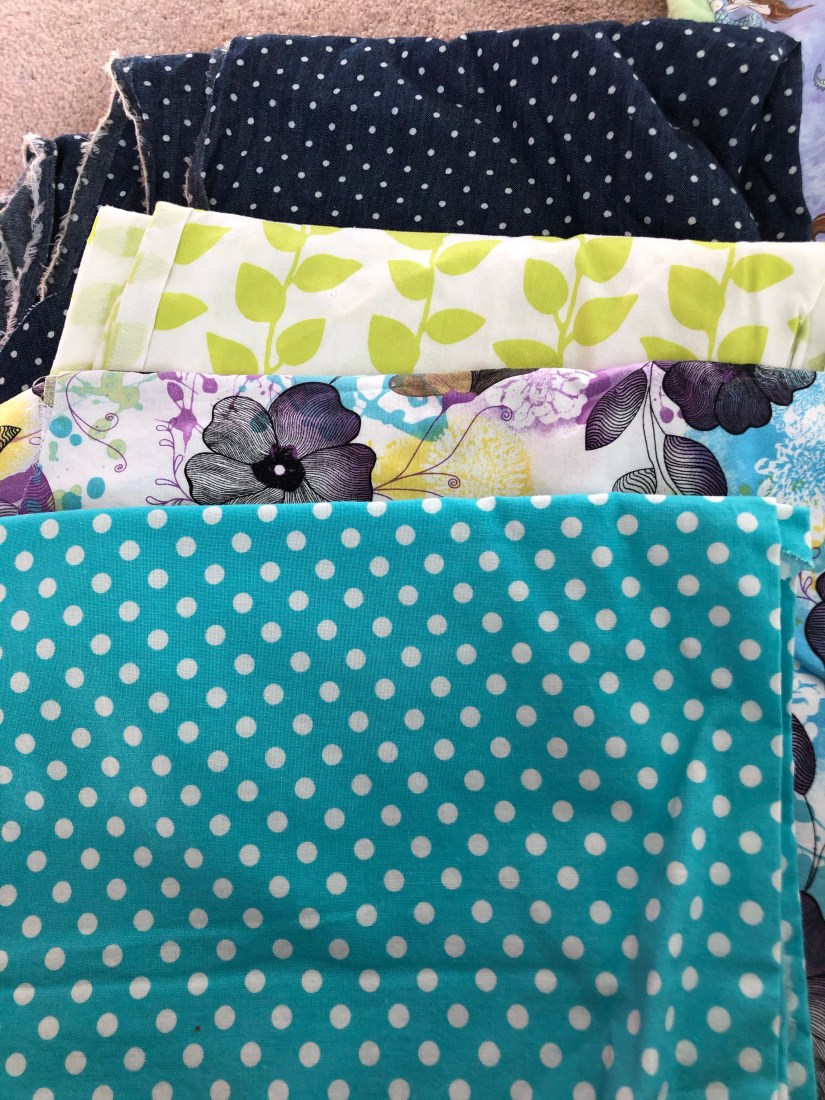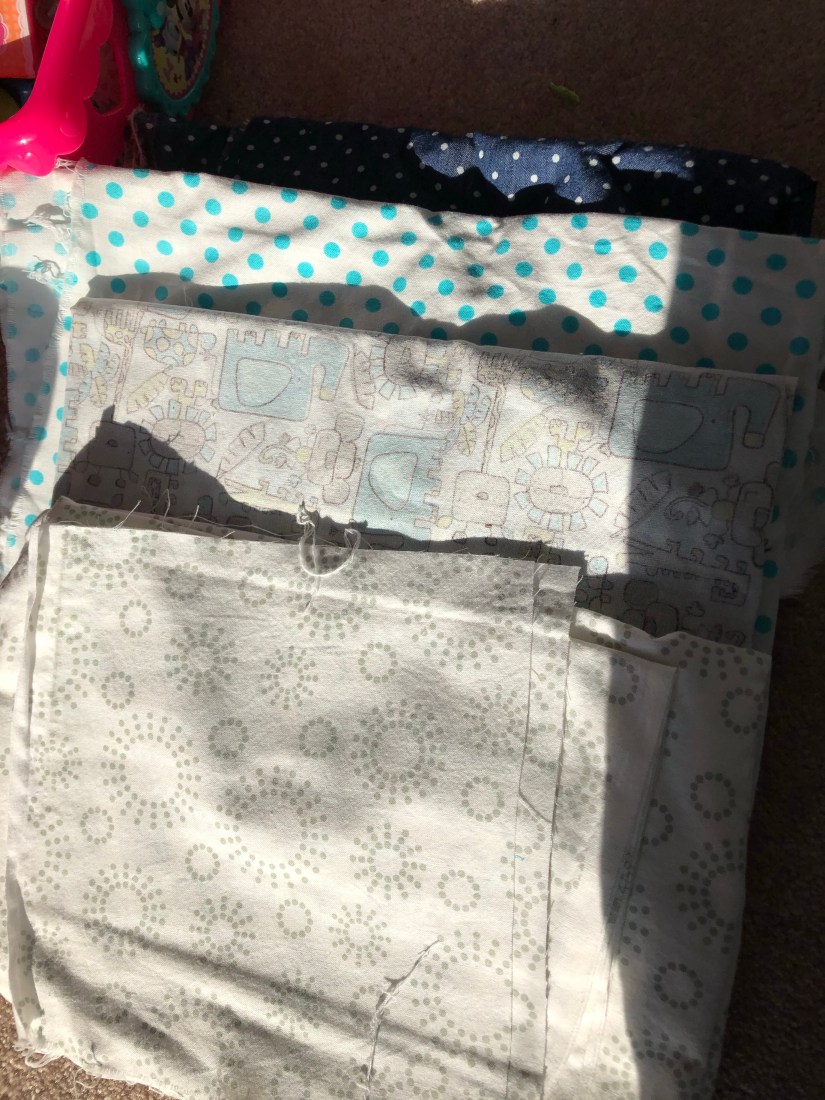 I recently taught my 3yo how to play Go Fish, Crazy 8’s and Old Maid. She totally understood the games and it blew me away BUT she couldn’t fit all those cards in her hands. I immediately went to Pinterest to see what solutions there were out there. I found this tutorial here and it was a brilliant idea! I wasn’t the biggest fan of the fabric she used but I had enough scraps on hand that I got to work matching. I put a couple combinations together that I liked.
