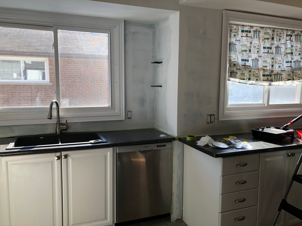 Our kitchen is a source of frustration. It was serviceable for a while until we had a roof leak and the water drained down the wall (between the paint and the plaster).