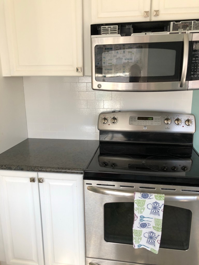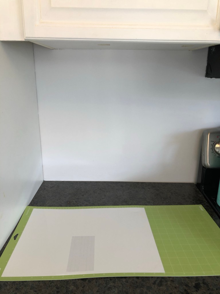 I had always wanted a backsplash in the kitchen but I couldn’t land on a favourite tile. I thought I’d like one and I’d read reviews to find out it looked a bit green, or I’d like a trendy shape for a while until I realized it would be near impossible to install. Then I came across a really cool Cricut post about a sticker backsplash.
