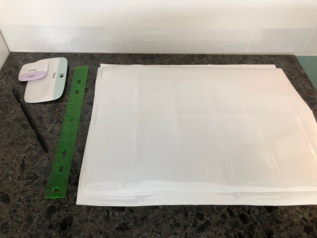 I had my stickers, ruler, pencil, smoother/scraper, a level and a craft knife.