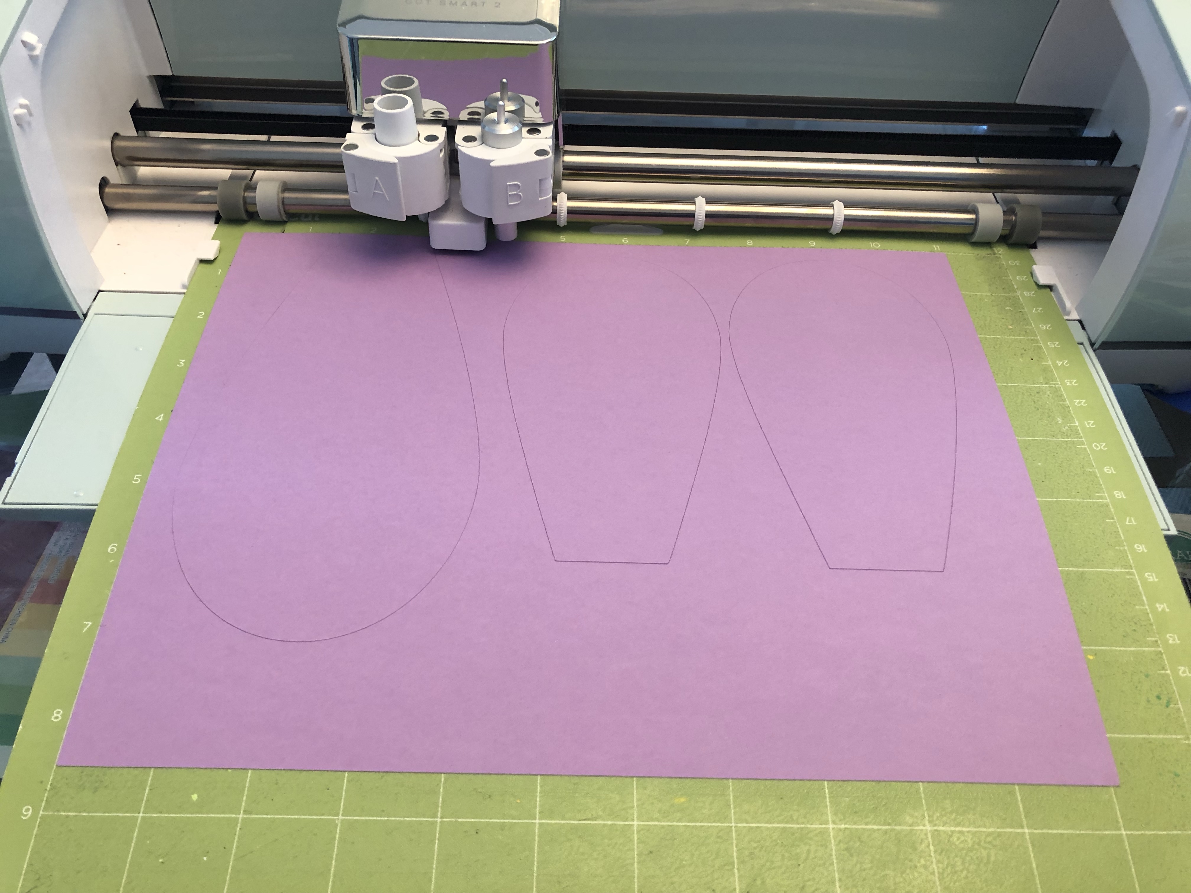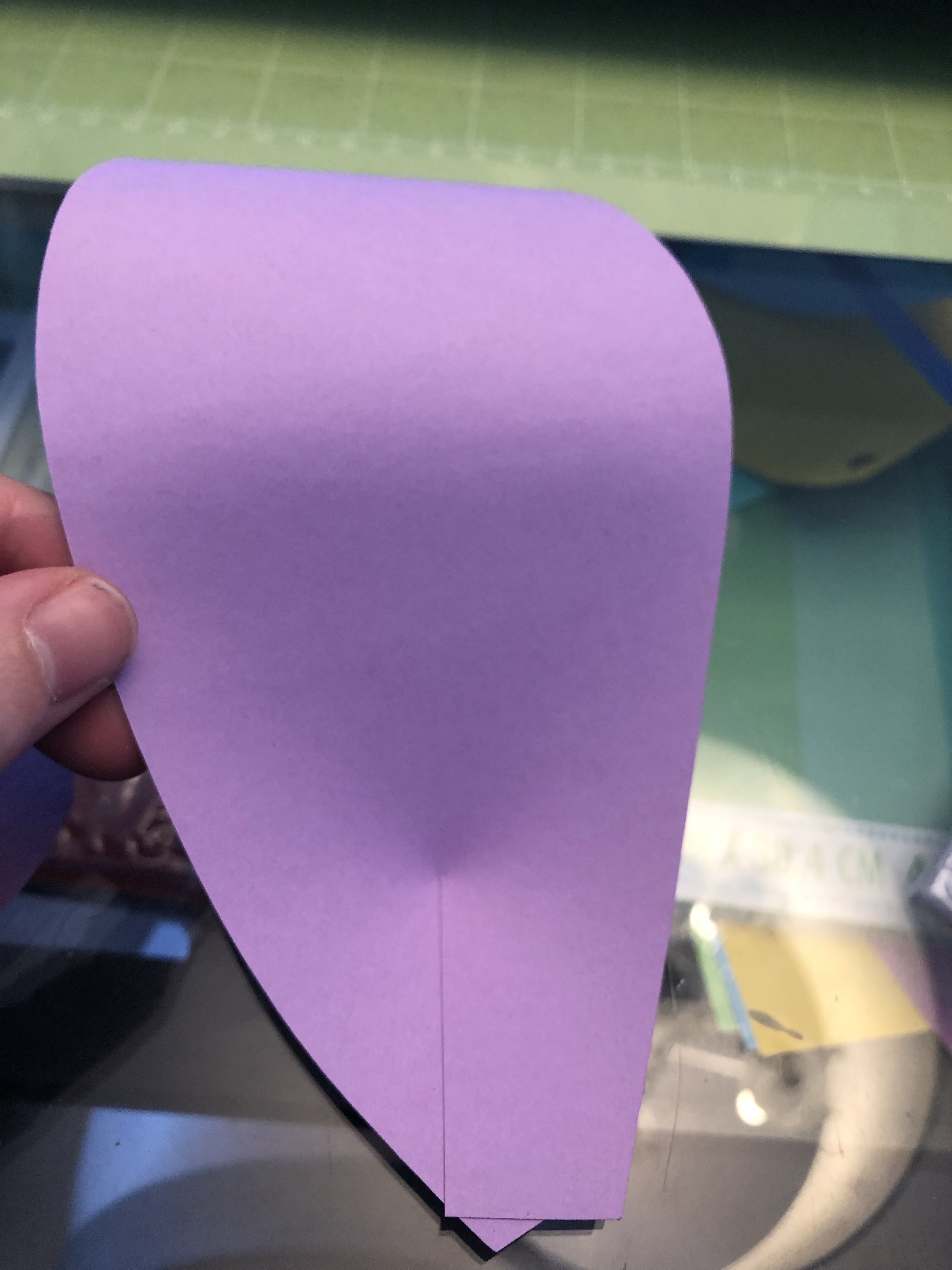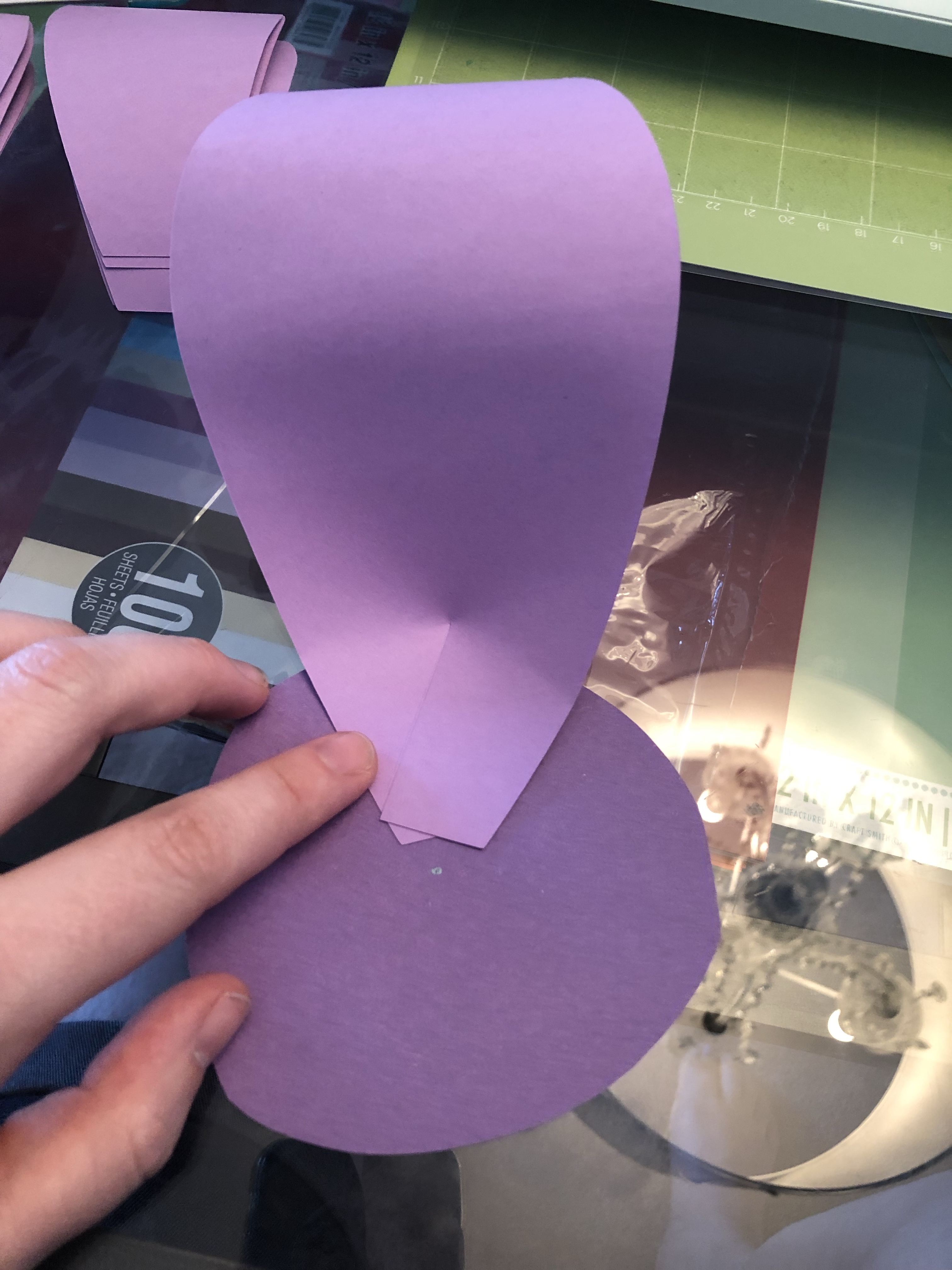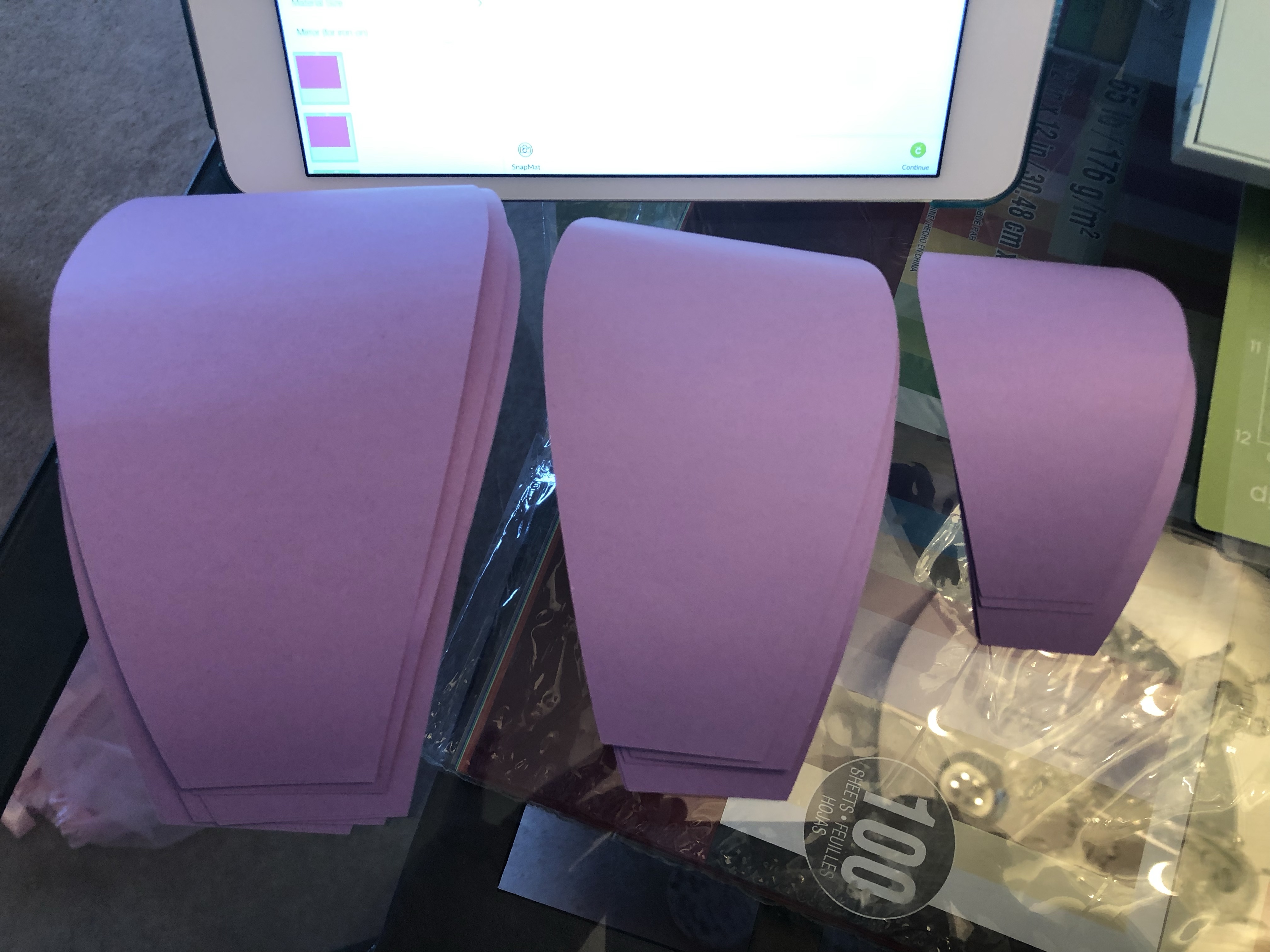 I needed some decorations for grade 8 graduation at my school. I’ve made small paper flowers before but I decided to make a couple larger ones instead. My school’s colours are purple and gold (but we often use yellow, too). I ordered a pack of different shades of purple cardstock from amazon