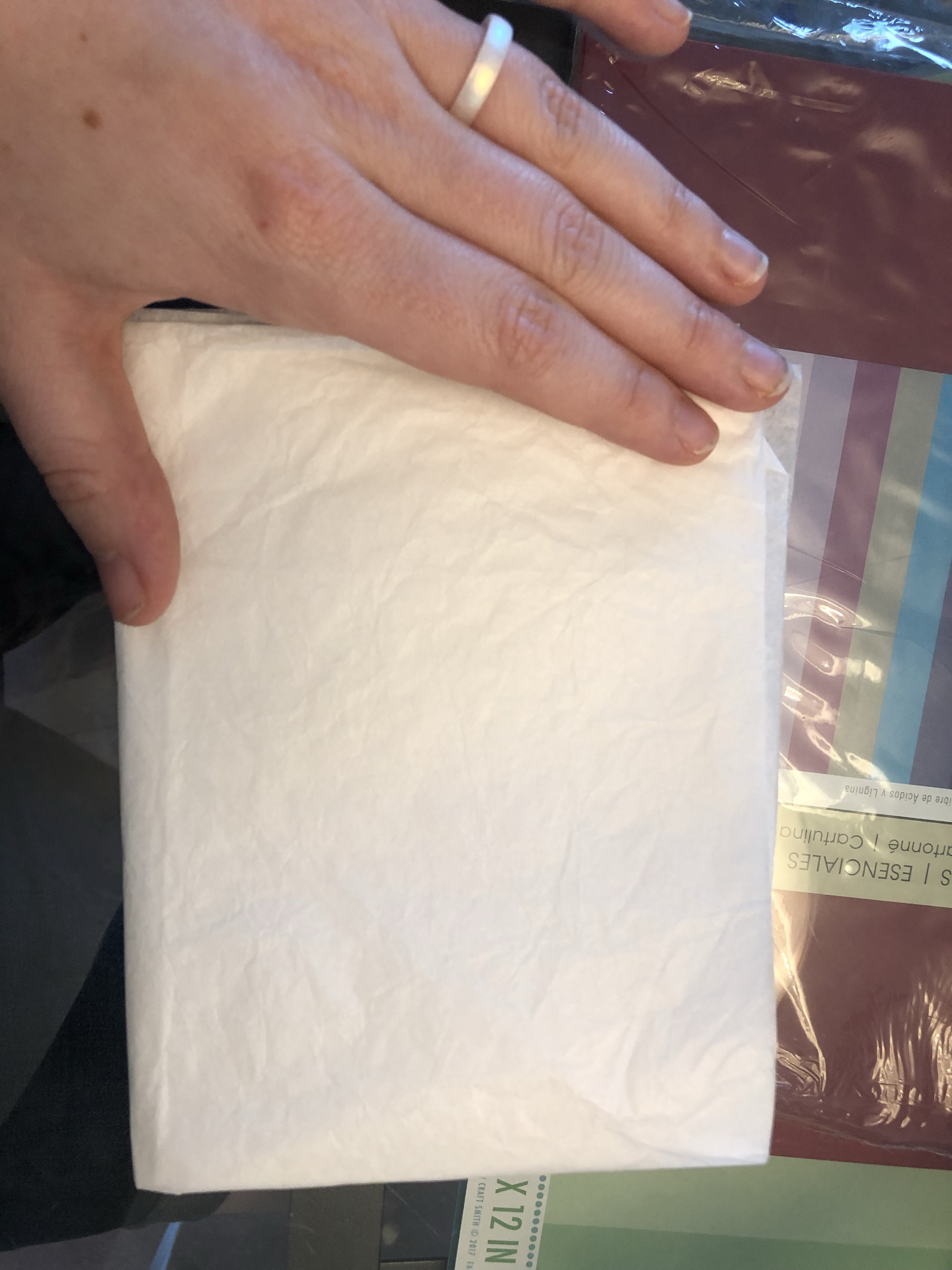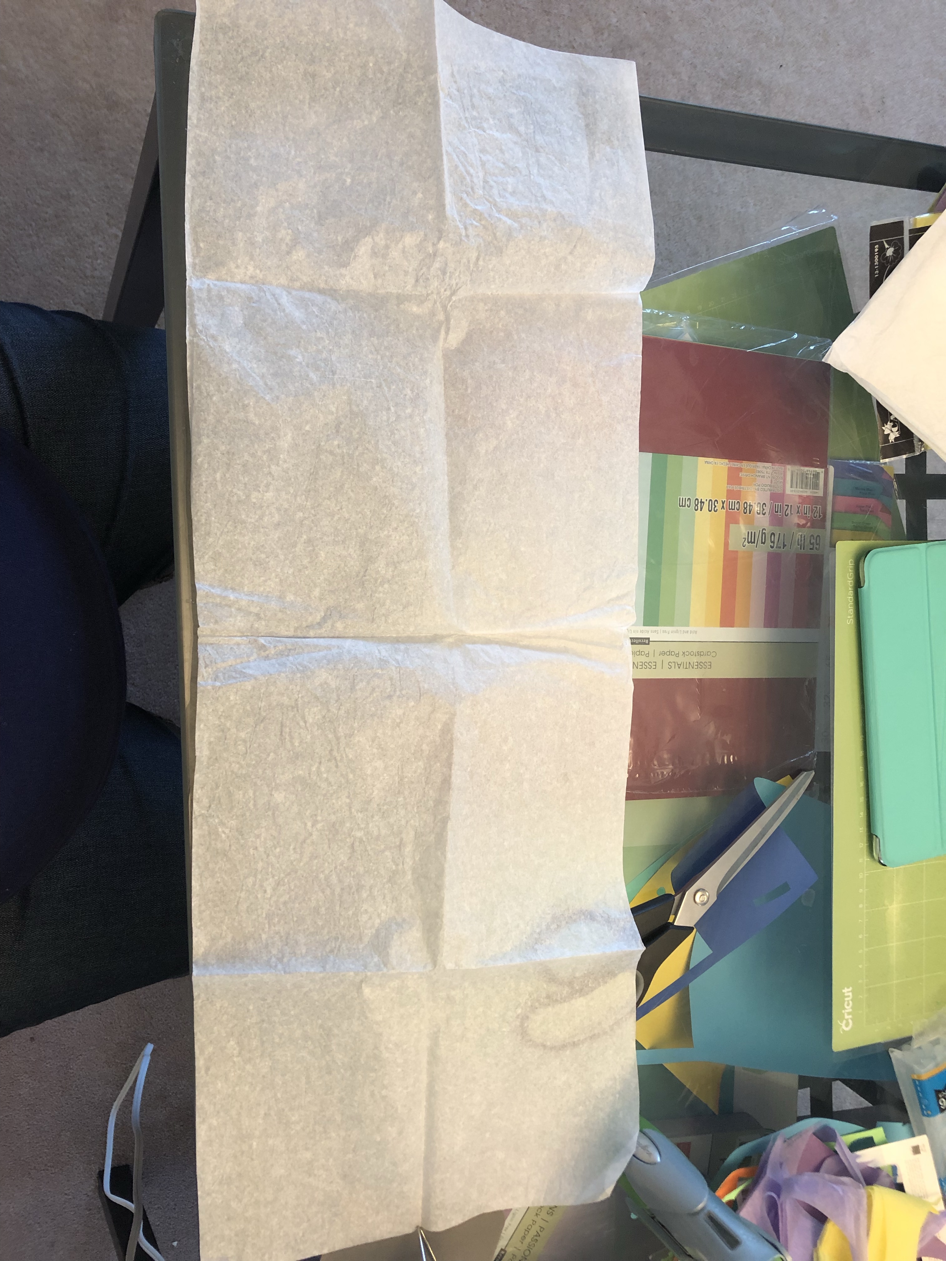 I folded some white tissue paper into a rectangle slightly bigger than I wanted my flower to be.