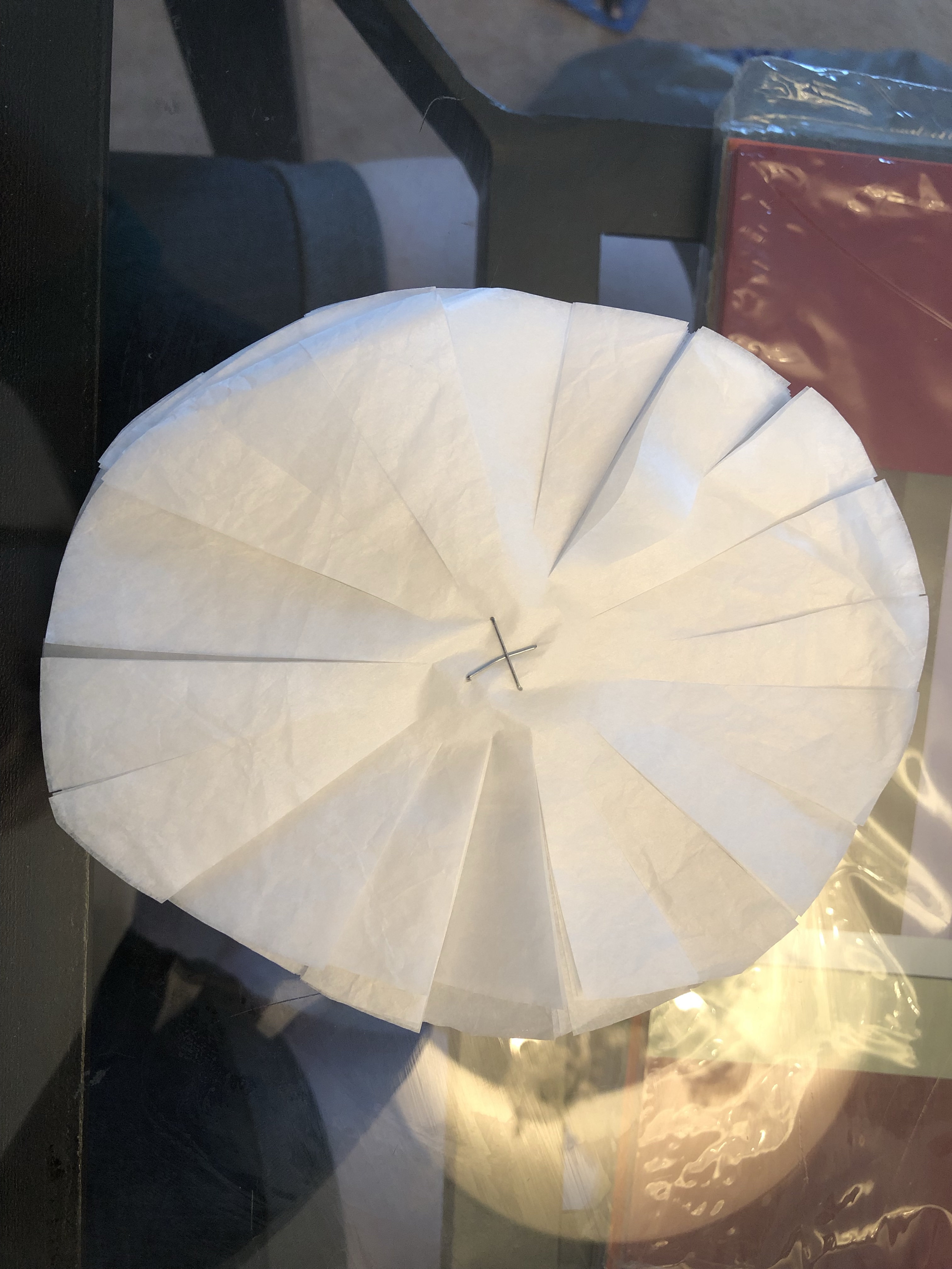 Pinch the middle so the petals stick up and you have a point where you can glue the tissue to the cardstock.